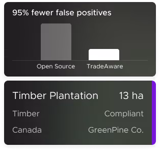 TradeAware helps procurement and compliance teams detect deforestation risk, collect supplier data, and stay audit-ready using satellite imagery, AI, and automation to simplify EUDR compliance. It’s a scalable, risk-averse solution built for operational excellence.