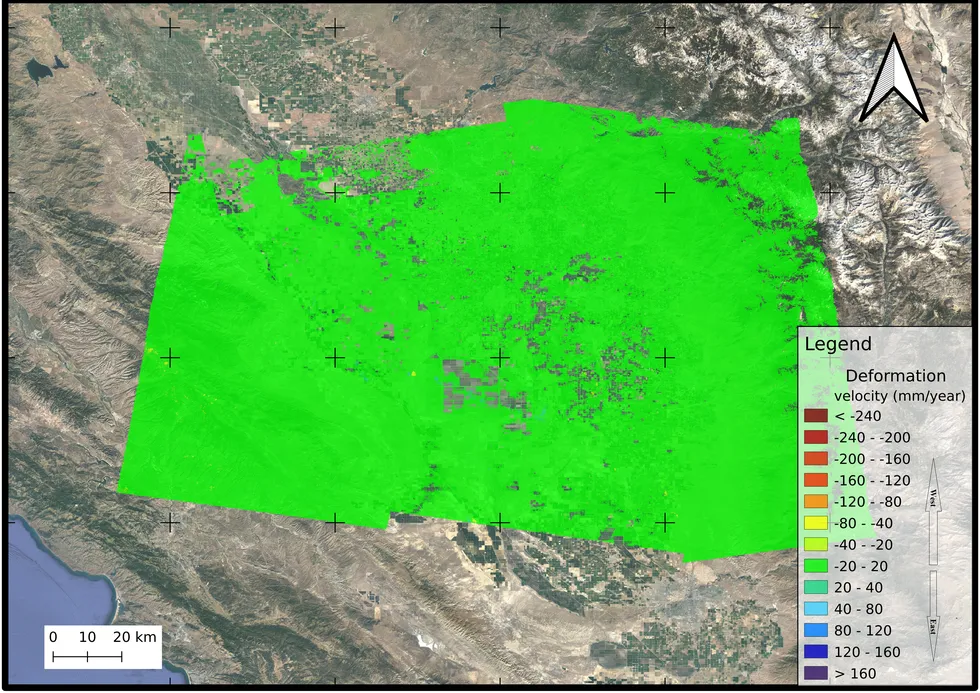 The study conducted by LiveEO on land subsidence in San Jose demonstrated solid concordance with the InSAR Land Subsidence Data from the California Department of Water Resources, affirming the effectiveness of our data processing methodology.