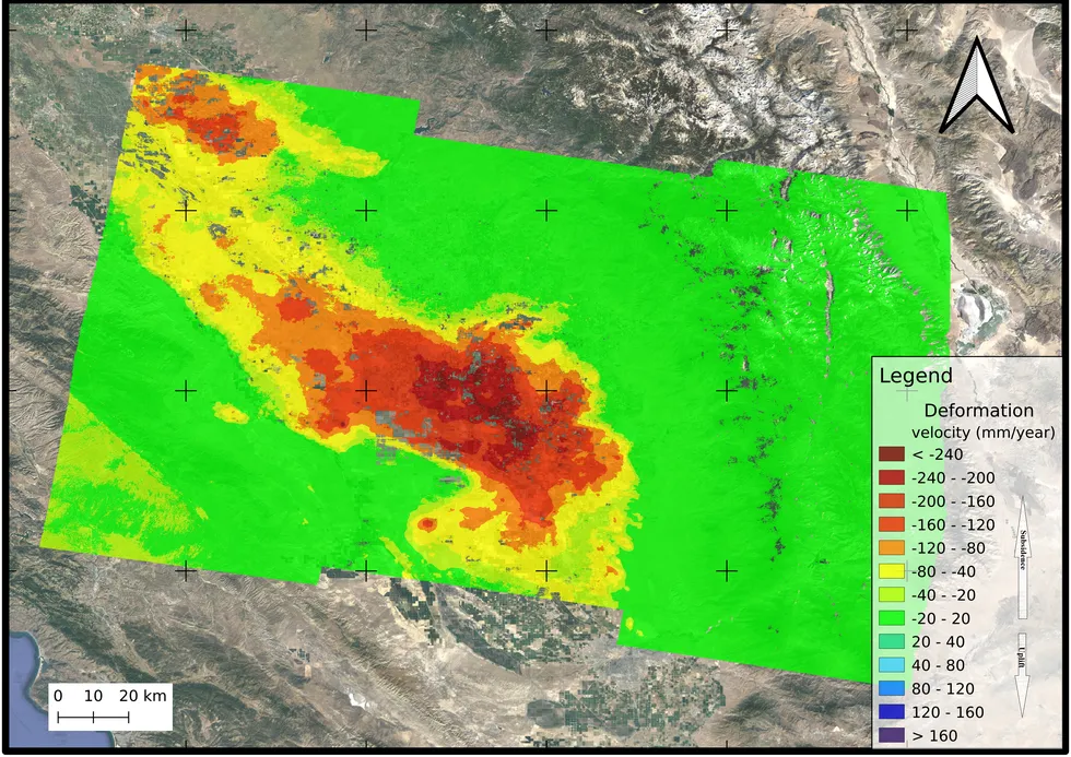 The San Joaquin Valley is notorious for having the biggest shortfall of groundwater in California, experiencing significant repercussions from over-extraction, such as severe land sinking. Persistent over-extraction of groundwater and the consequent land shift can amplify the likelihood of expensive damage to surrounding infrastructures like buildings, highways, train tracks, airports, and pipeline systems.