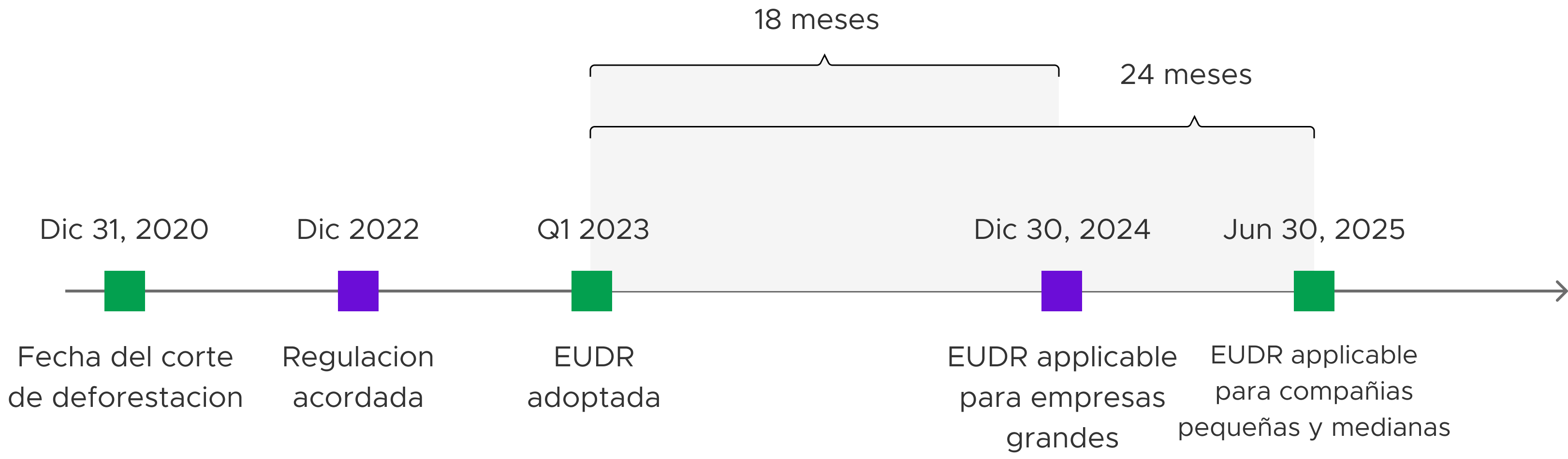 El plazo de aplicación de los requisitos del Reglamento puede variar en función de la empresa y de su cadena de suministro. Las empresas deben mantenerse informadas sobre los plazos del reglamento y su aplicación gradual.
