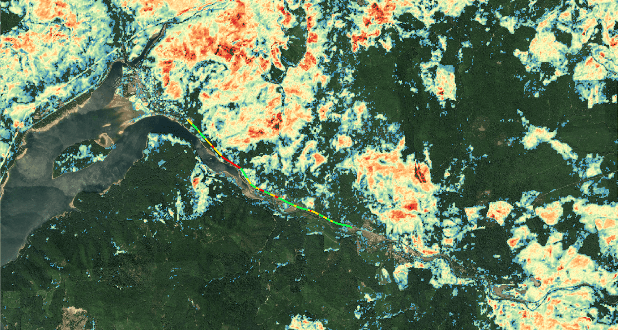 In partnership with Intel Geospatial, we completed a review of a utility's power line corridor post-wildfire to help them better understand the extent of the damage caused by the wildfire and to apply for Federal Emergency Management Agency (FEMA) assistance recovery funds. With a 10 m resolution, an Area of Interest (AOI) of 50 miles, and a corridor of 300ft, LiveEO’s Post-Wildfire Analysis was able to identify areas where fire directly contacted, or came close to contacting, power lines. This enabled our customers to efficiently organize their recovery program from their office before heading to the field.