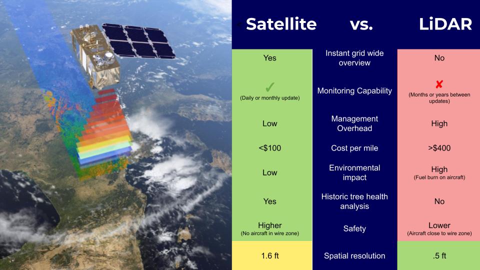 The adoption of LiDAR has been an important step in digitizing vegetation management. While there likely will be some applications of laser scanning, satellites will monitor the bulk of infrastructure networks.