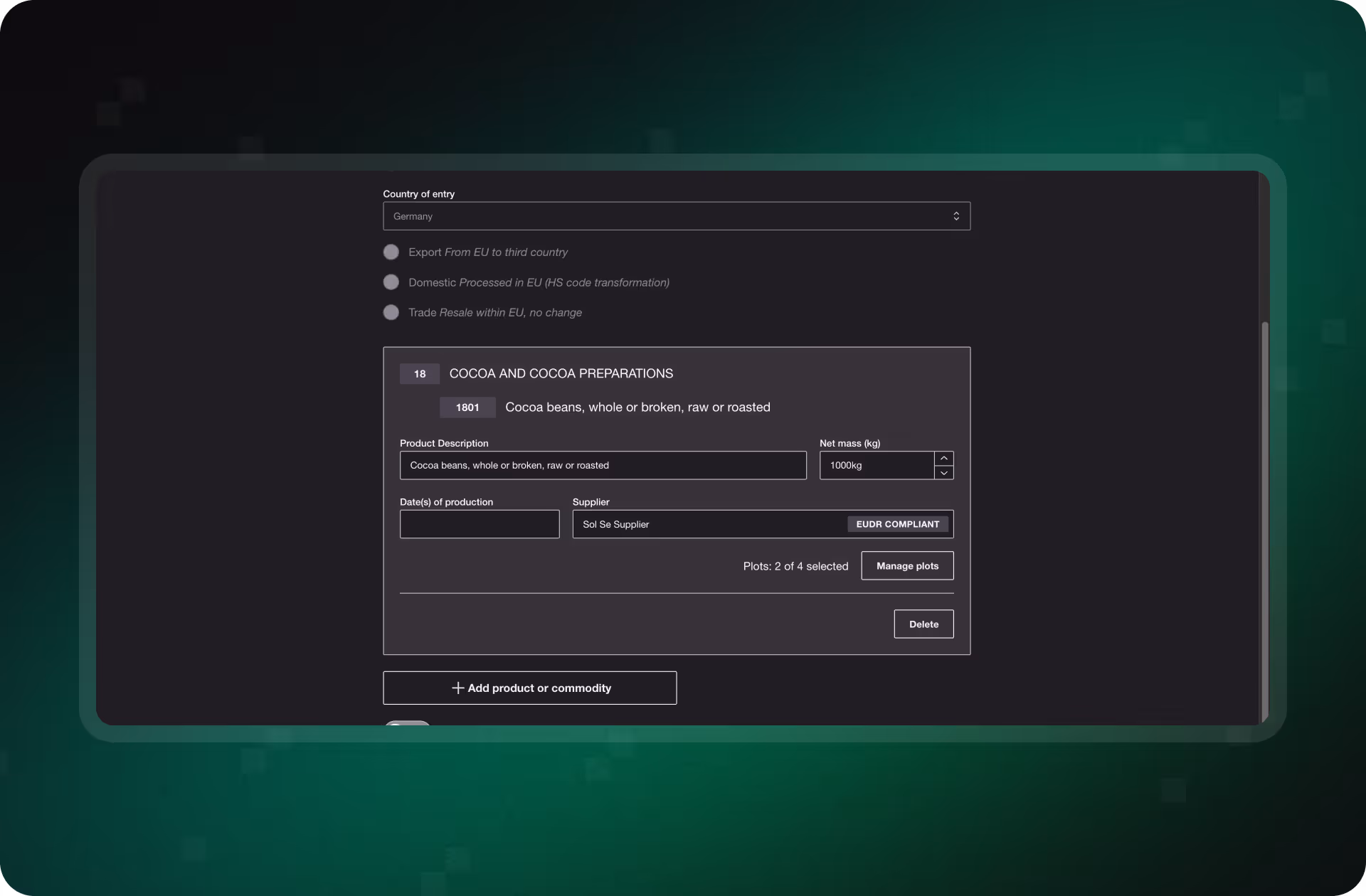 Yes. The system supports managing composite products by associating multiple plots and suppliers to a single product or transaction and supports multi-component DDSs.