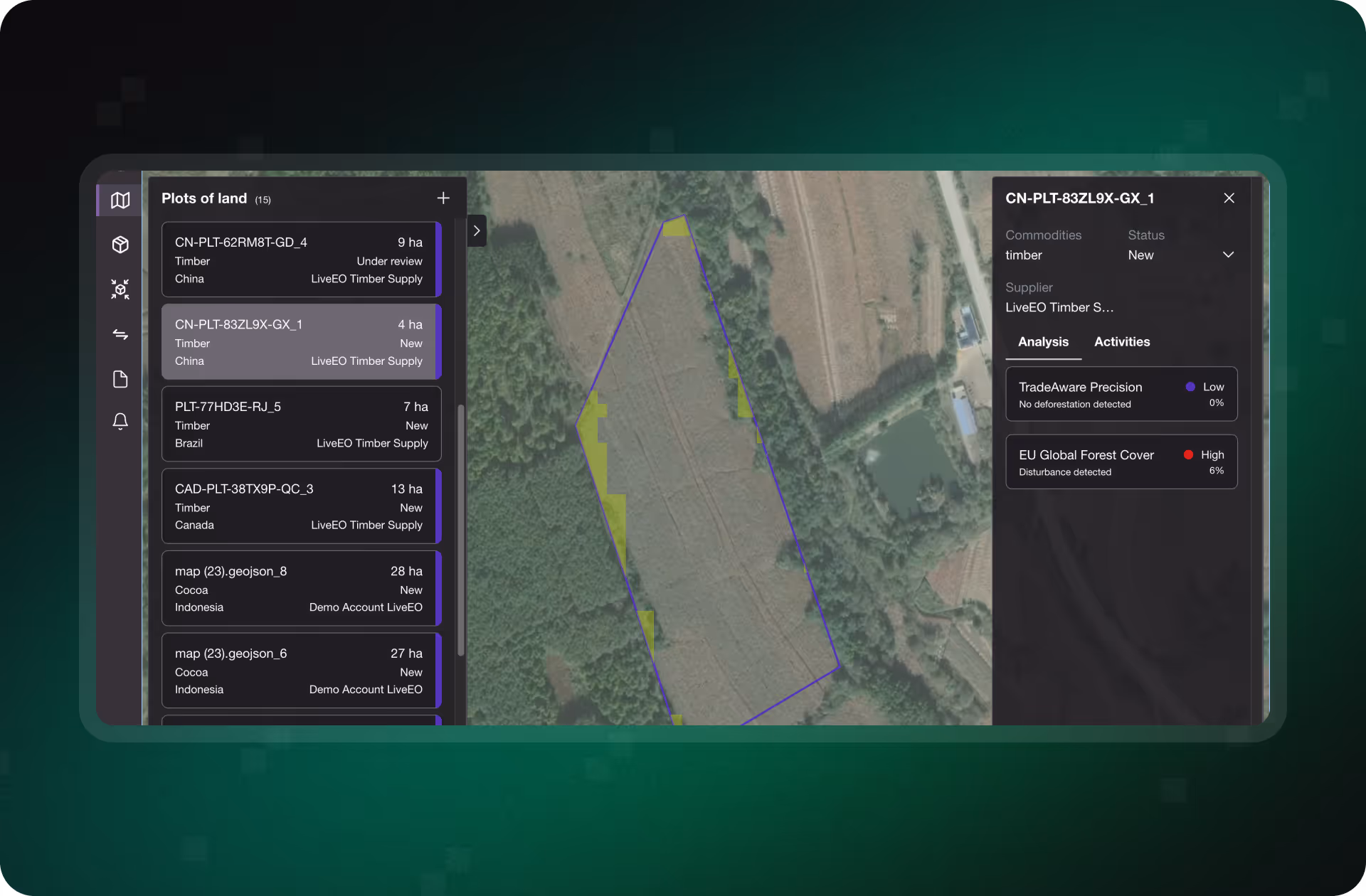“Partnering with LiveEO allows us to establish a platform for gathering information from our suppliers, validating it, storing it, and ultimately sharing it with our customers in a form that is easily submitted to the EU TRACES system. Reaching that decision was a milestone moment in the project.”