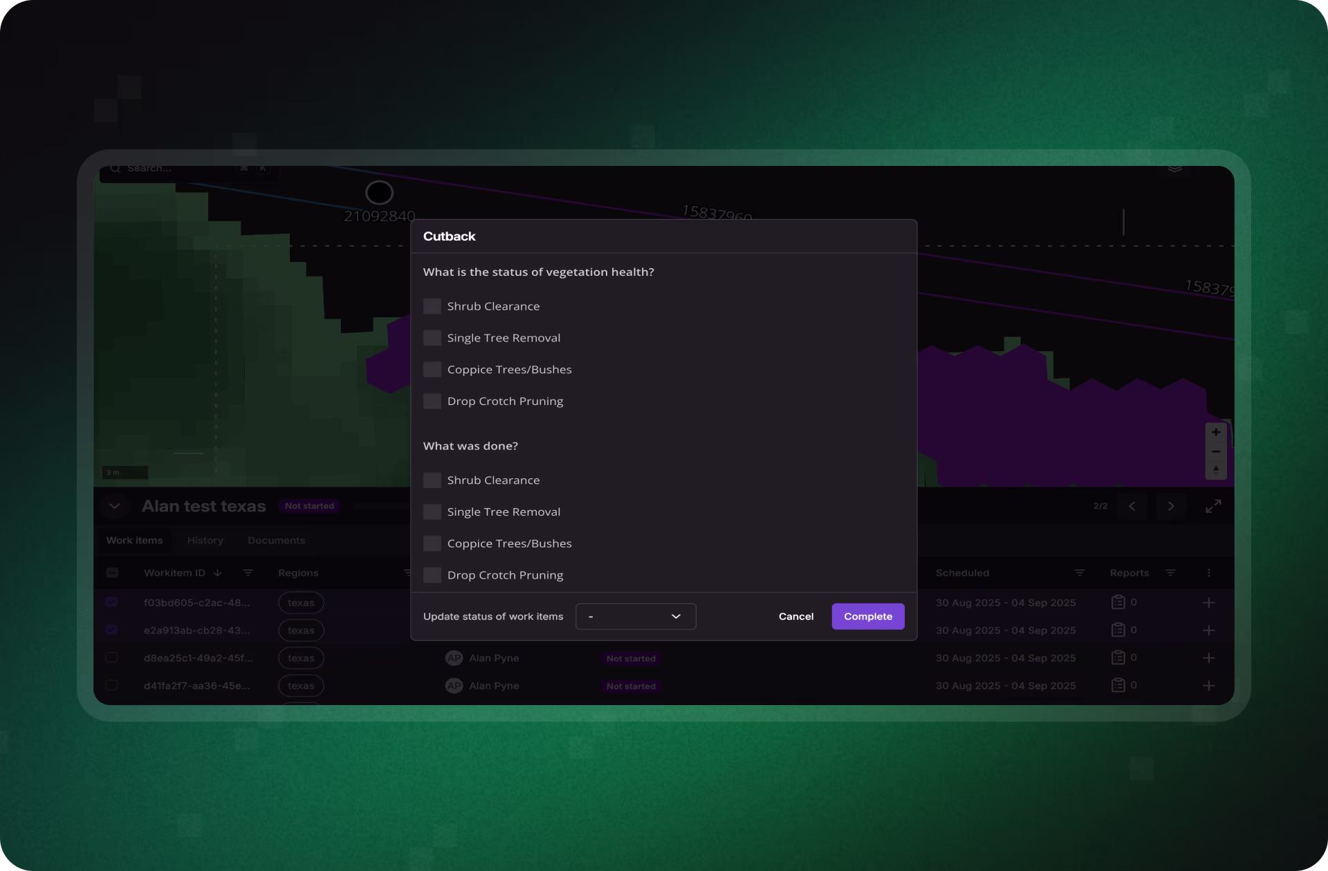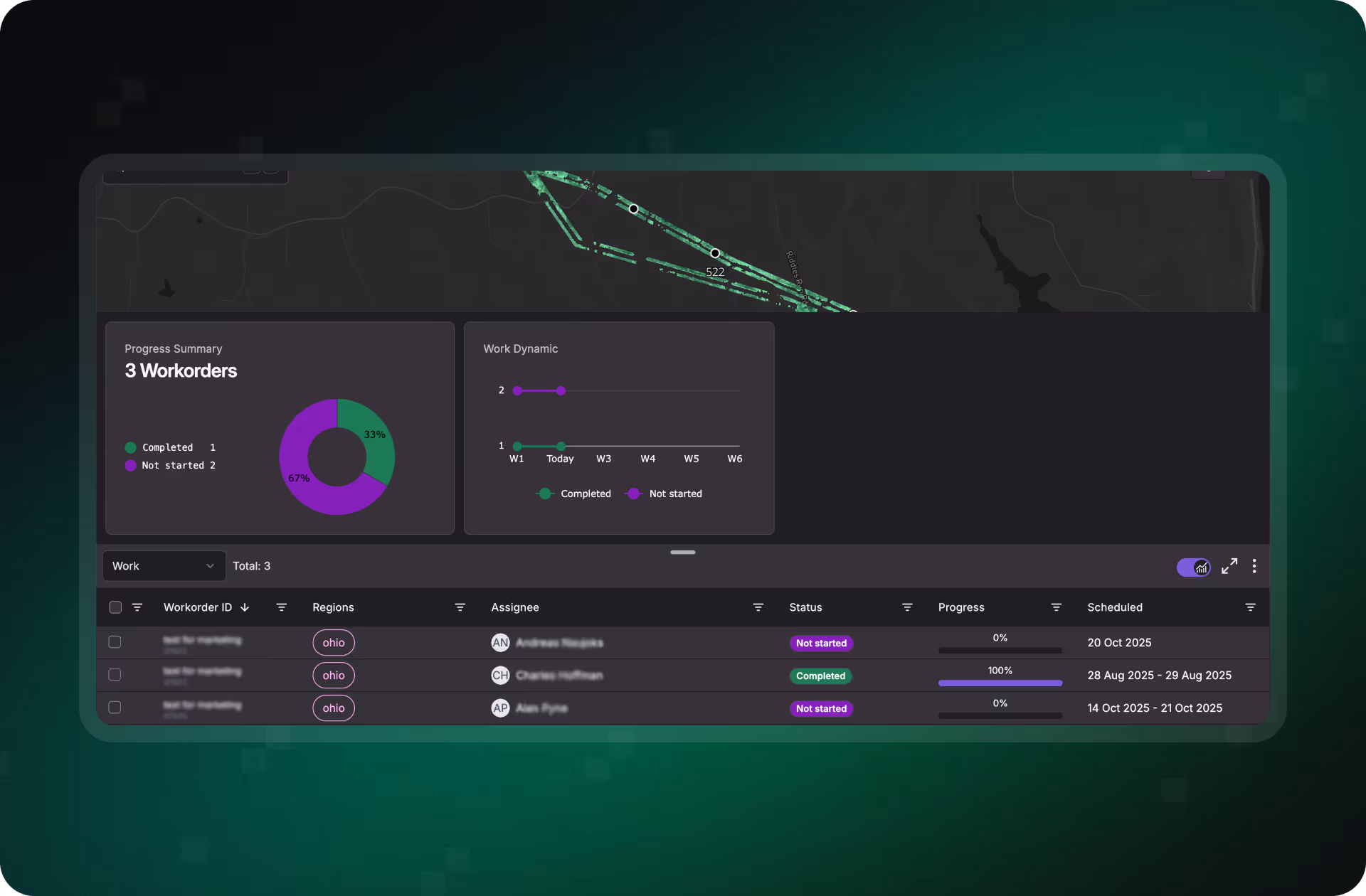 Treeline converts prioritized risks into map-based work orders with built-in QA and context. Crews receive clear instructions, supervisors see progress in real time, and every intervention is logged with proof, ensuring resources are allocated effectively and consistently.